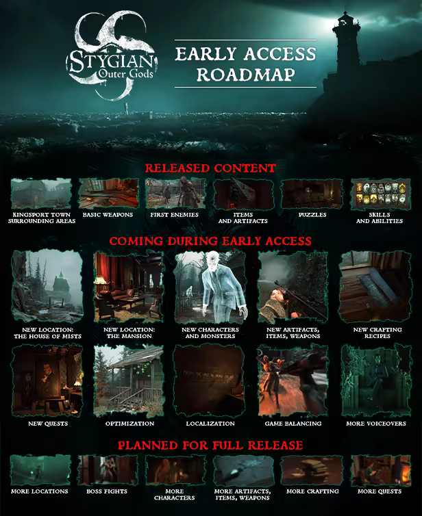 「Our goal is to have the full version of Stygian: Outer Gods ready for release in the first half of 2026. However, we want to ensure the game is as polished as possible before leaving Early Access. If additional time is needed to reach that level of quality, we may extend the development period beyond our initial estimate.」