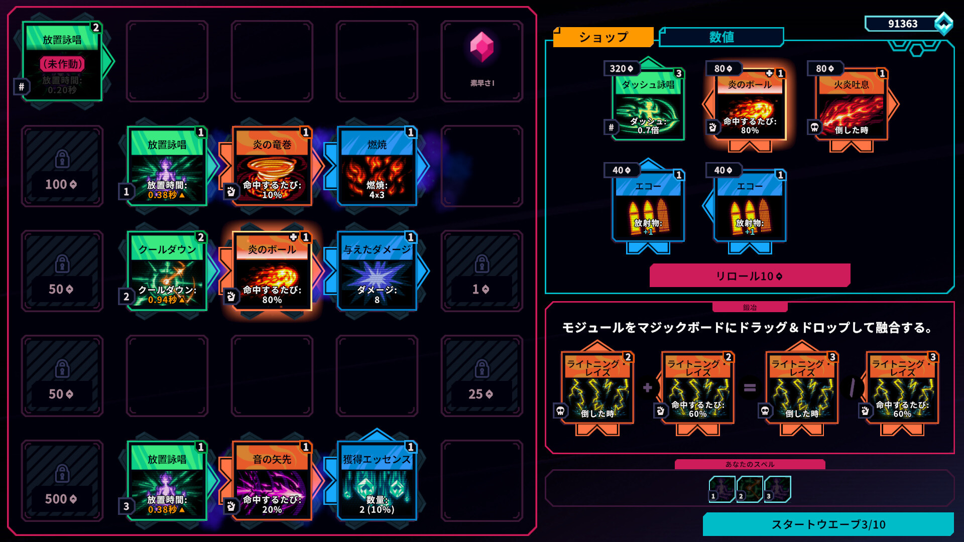 高速で連射する音波矢が好みか、それとも遅いが破壊力抜群の火球、あるいは画面を飛び交う恐怖の雷が気に入るか?ゲームには100種類以上の魔法エレメントが用意されており、自由に組み合わせて独自のバトルスタイルを確立できる。多彩なスキルの中から、敵を撃破するための最適な組み合わせを見つけ、毎戦ごとに新鮮な戦闘体験を味わおう!
