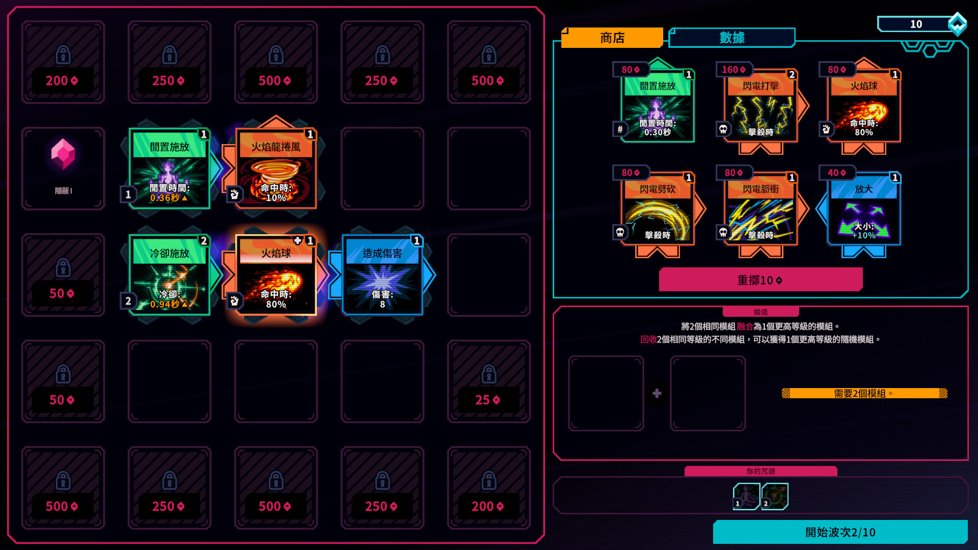 你喜歡快速發射不間斷的音波箭,還是更偏愛釋放緩慢但威力十足的火球,亦或是能滿屏飛舞的恐怖閃電?遊戲擁有超過100種法術元素,任你自由搭配,在這千變萬化的技能組合中,你將探索出最適合自己的戰鬥風格,找到擊敗敵人的最佳方案,讓每一場戰鬥都充滿了新鮮感!