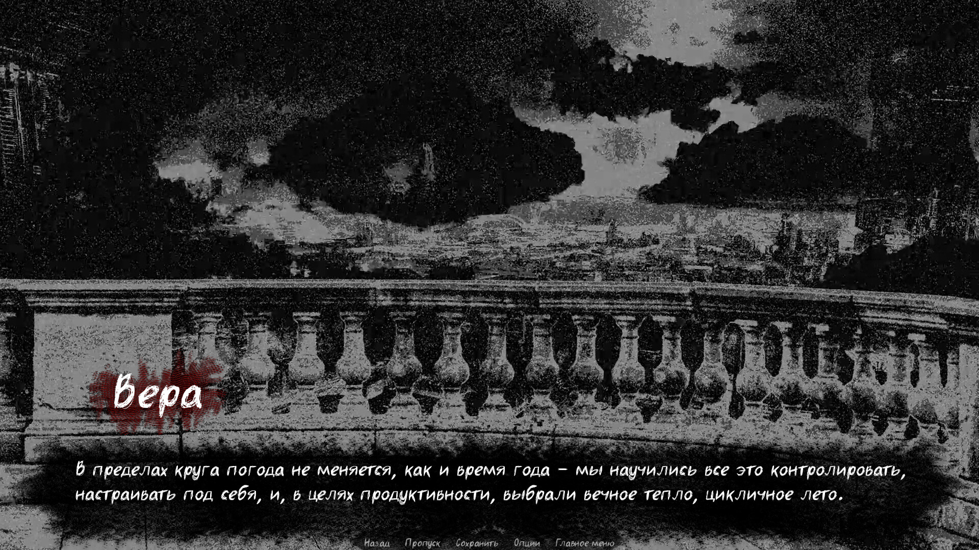«Потерянная бесконечность» – нелинейная визуальная новелла с элементами триллера. Тяжёлая, гнетущая атмосфера, мрачные пейзажи будущего, ощущение тоски и отчуждения, с маленьким и ложным лучиком надежды.