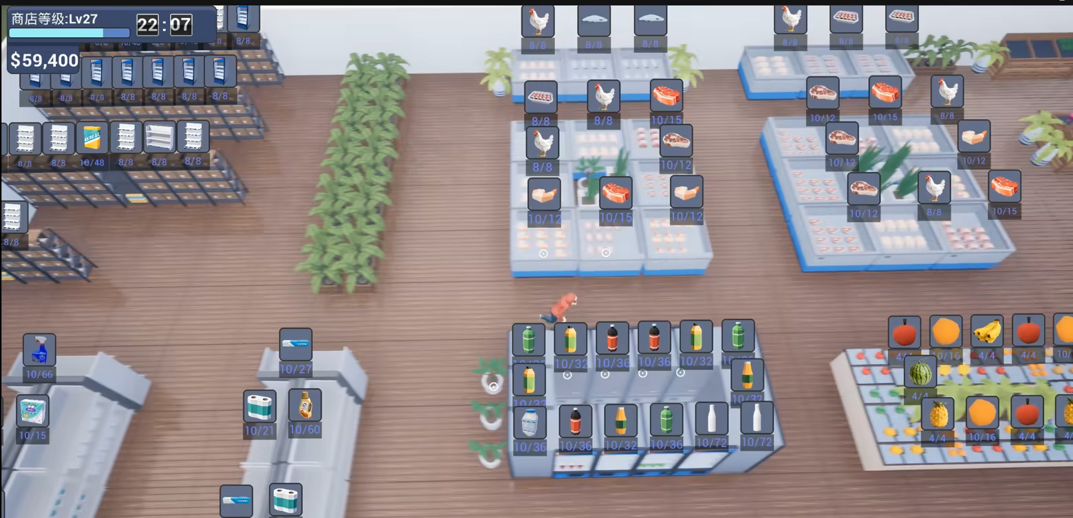 In Multiplayer Supermarket Simulator, you take on the role of a supermarket manager. This is a top-down perspective game where you can personally handle every aspect of running a supermarket—from operating cash registers to managing warehouse inventory, and even hiring NPC staff. Every choice you make will influence your customers' decisions. You can play alone, or team up with friends in the online co-op mode to expand your store and build the supermarket of your dreams.