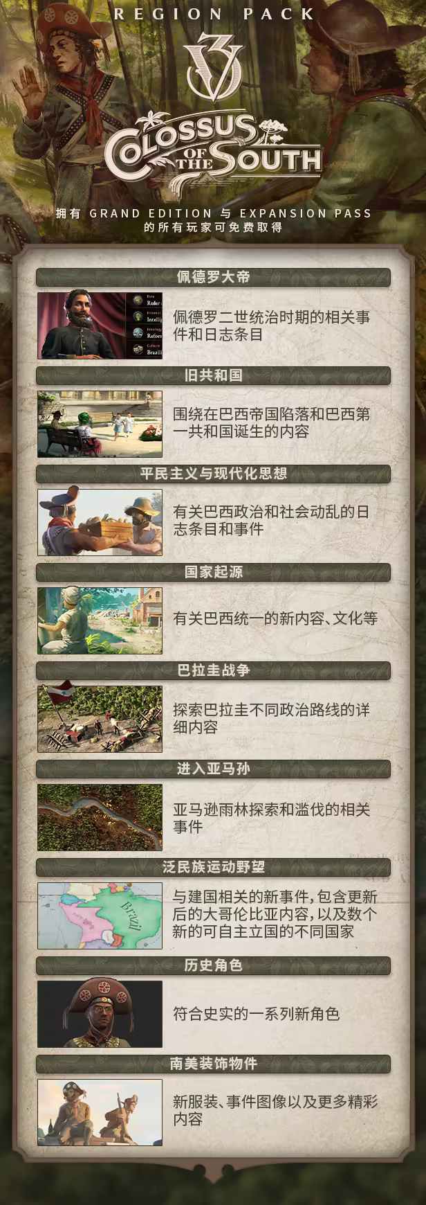 《Victoria 3: Colossus of the South》包含下列相关内容: