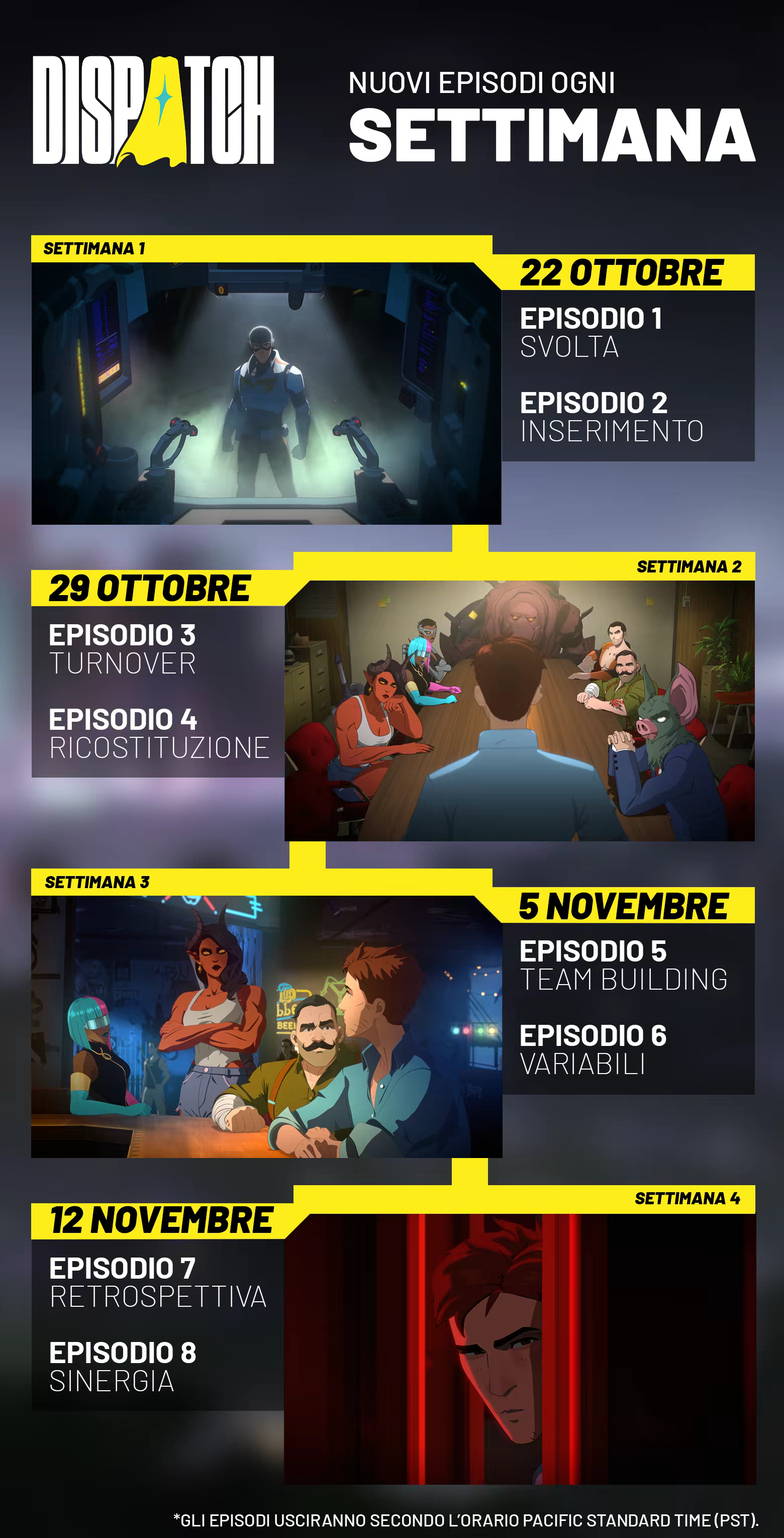 Dagli Scrittori e registi di Tales from the Borderlands e The Wolf Among UsDispatch è una commedia ambientata in un luogo di lavoro per supereroi, ambientata nell'odierna Los Angeles.