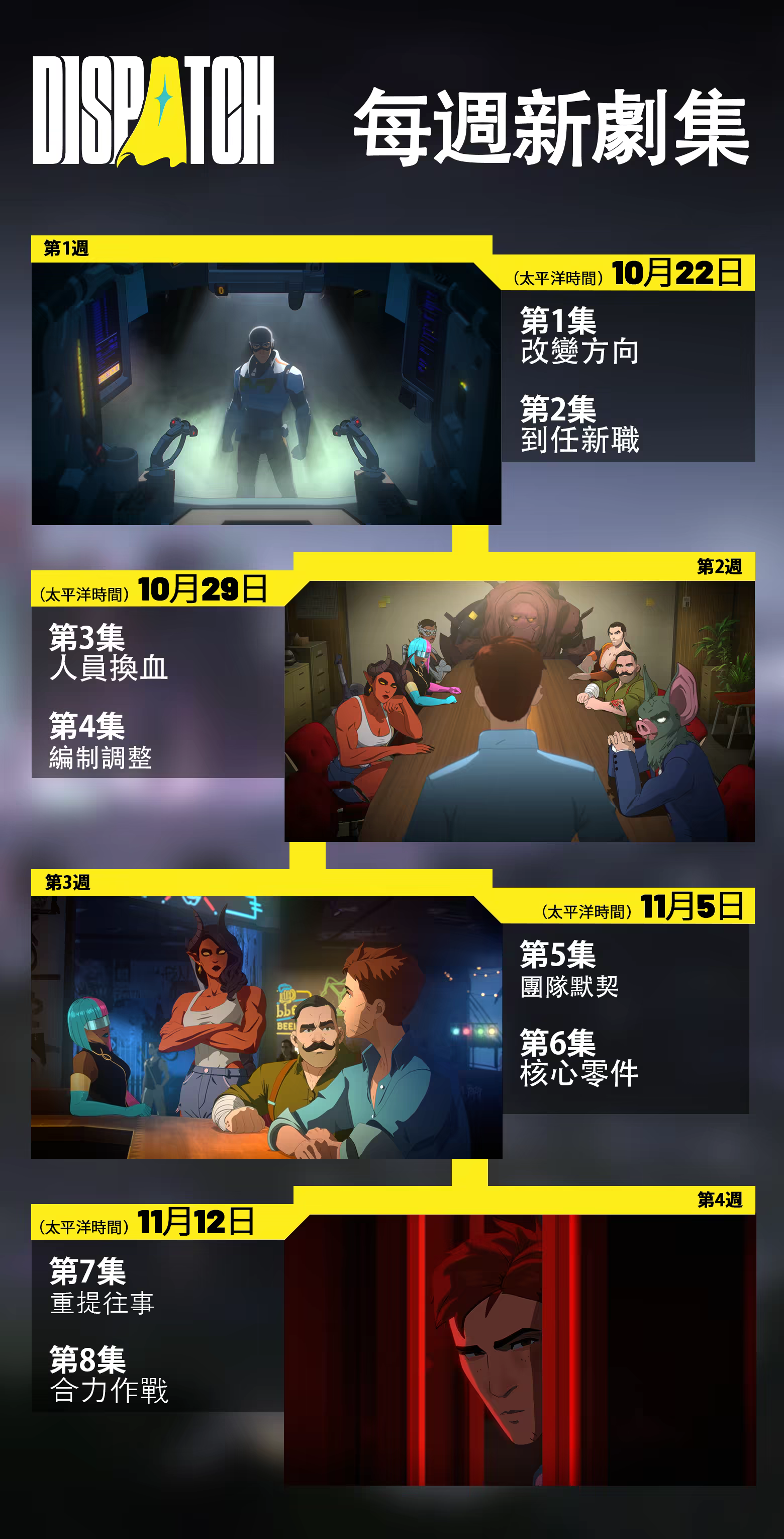 《Dispatch》結合了故事、策略與幽默,探究怎樣才是真正的英雄,不論是穿著披風出任務,還是坐在辦公桌辦公。