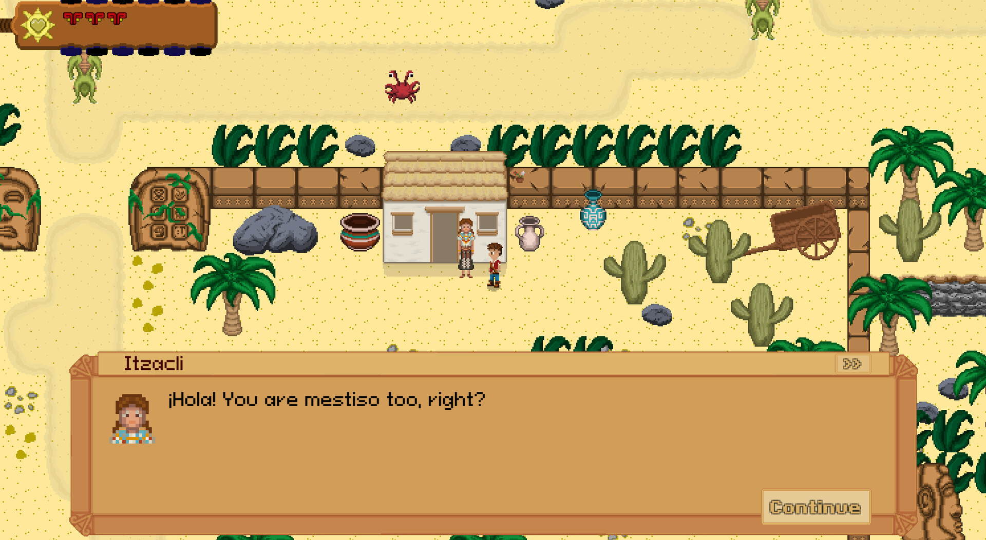 Over Many Waters is an exciting Top-Down, Action-Adventure RPG set in 1500s Mesoamerica. In this fantasy indie game, play as Leo, a seafaring adventurer of Spanish and Aztec descent. Gather ancient and mystical weapons and items. Fight for Azuria and the Jaguar Princess to save a dying land from the evil Siyak, the Smoking Frog. Will you choose the fierce life of an Aztec warrior or the sea-hardy ways of the exploring Spaniard? Connect with your roots as a child of both worlds and determine your path in the new world.