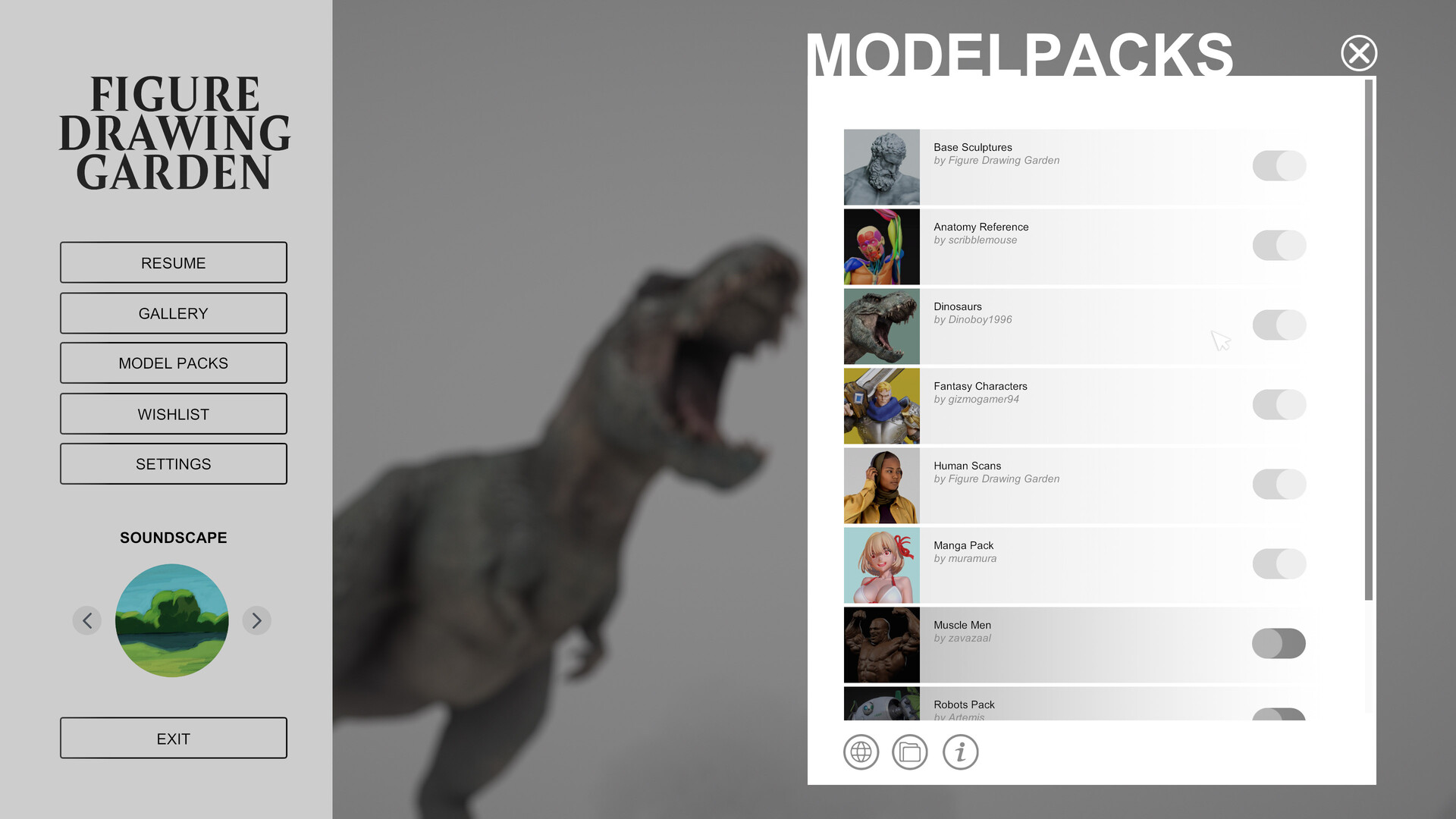 Genom sin lugna miljö och valfria Ljudlandskap är Figure Drawing Garden designad för att hjälpa dig att nå ett flow-tillstånd.