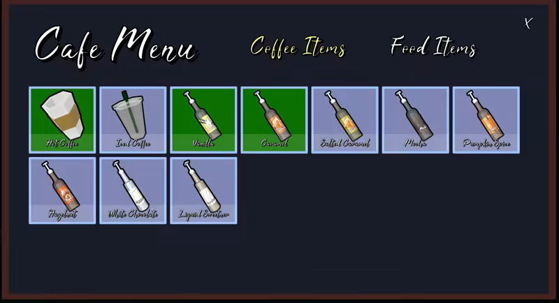 “Currently, you're able to make 8 Hot Coffee Recipes, 5 Iced Coffee Recipes, can upgrade your Café, and sell food to customers!”