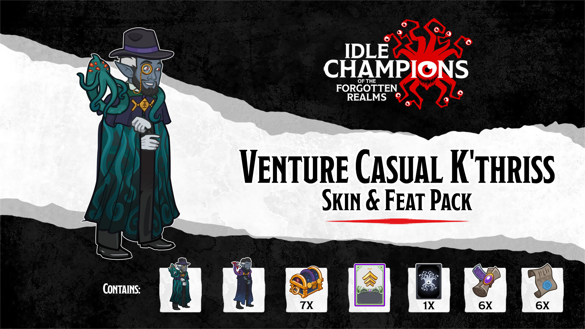 Notice: Idle Champions - Venture Casual K'thriss Skin & Feat Pack is no longer available on the Steam store.