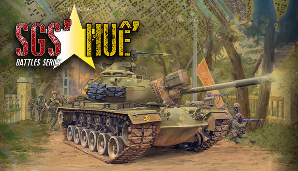 SGS Battle for Hué recreates this battle on a "grand tactical" scale. Counters represent companies, platoons, sections and even groups/squads, while a game turn corresponds to one day of real time. Turn-based play allows you to face off against the AI, another player in a "hot seat" or via PBEM. Both sides ("Free World" and "Communists") are playable.