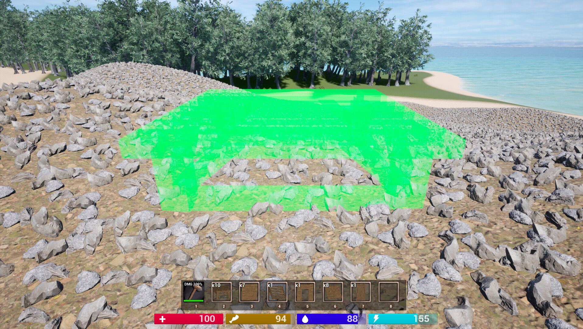 section for a game where players need to survive from wildlife, mine resources, craft items and structures,