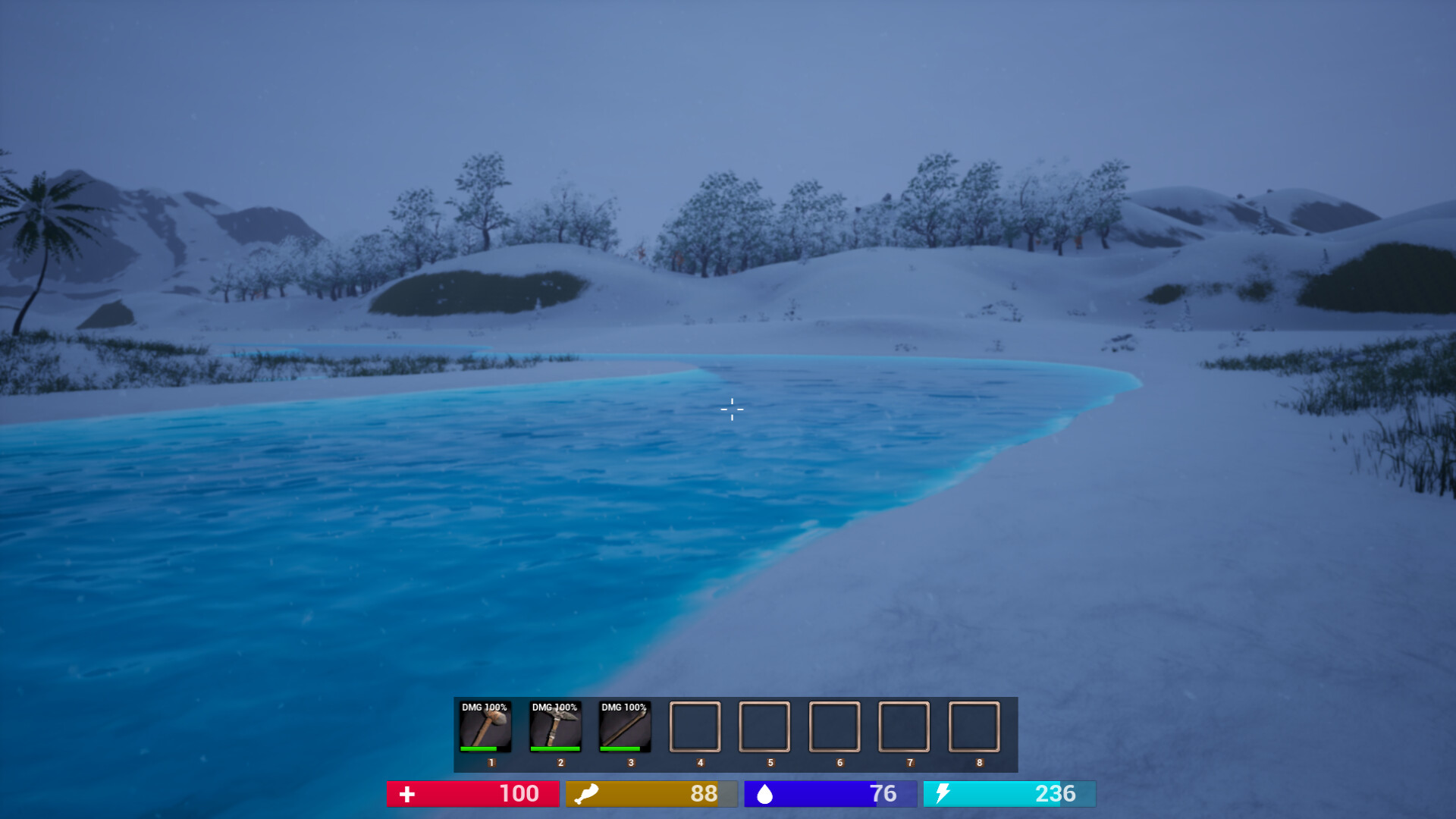 section for a game where players need to survive from wildlife, mine resources, craft items and structures,