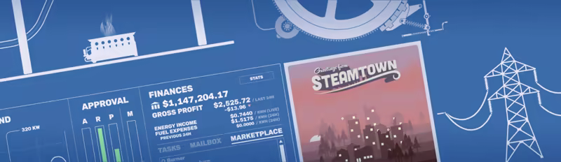 Isambard, the mayor of a small town, has just purchased a steam engine and hires an engineer from out-of-town to operate it. Play the role of this engineer as you juggle fluctuating power demand, city events and complex finances. Push yourself to operate as efficiently as possible and grow Steamtown from a small village to a burgeoning metropolis!