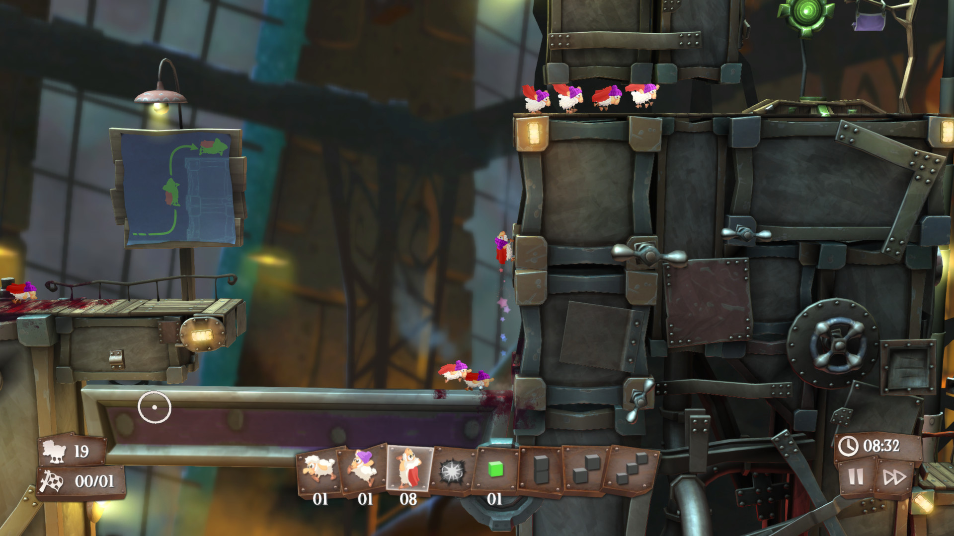 Flockers is a modern day take on the classic A to B puzzle genre with a generous helping of sinister foreboding and dark humour for good measure. Levels have been designed to challenge the player’s skill and strategic planning as they attempt to guide their flock past heinous traps, sadistic devices and diabolical puzzles; rewarding those that can save the most sheep while still allowing progression for anyone who falls foul of the factory’s deadly machinery.