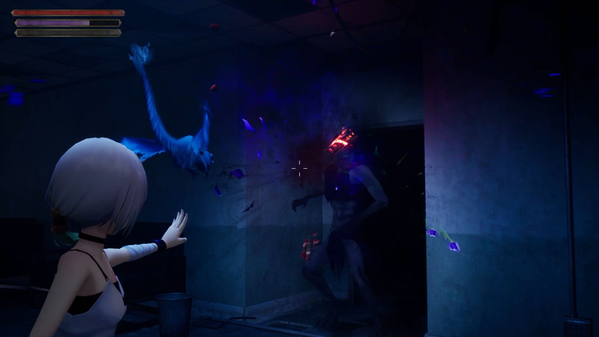 “Horror Action Adventure Game” In a ruined research facility, a girl named Cynthia awakens possessed by the mysterious entity Belial. Haunted by darkness and eerie echoes, she battles unknown horrors and teams with Belial to escape, only to uncover a terrifying secret hidden within the lab.