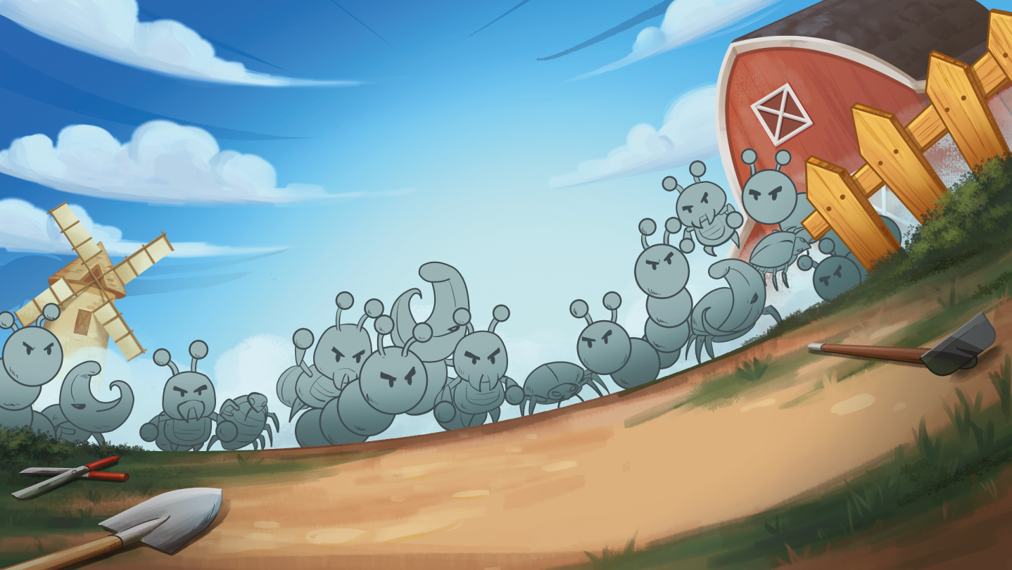 The farm is the perfect setting for the epic battle that unfolds. Immerse yourself in rural life as you defend your precious crops. Face a variety of enemies, all based on typical farm insects. Some of them even launch projectiles, keeping you on your toes!