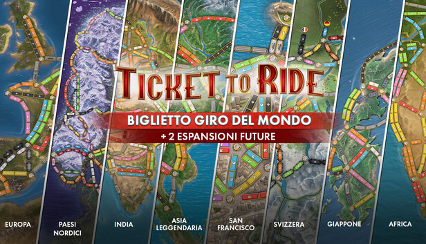 Per costruire l'ultimo impero ferroviario, hai bisogno del Biglietto Giro del Mondo di Ticket to Ride! Con il Biglietto Giro del Mondo di Ticket to Ride, avrai accesso immediato alle espansioni attualmente rilasciate. Avrai anche accesso a tutte le espansioni inizialmente pianificate man mano che vengono rilasciate, per un totale di 10 espansioni!