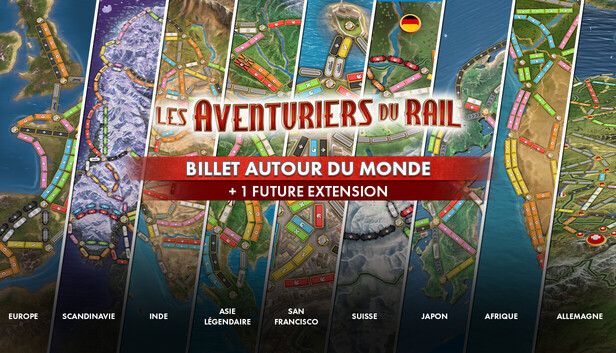 Pour construire l'empire ferroviaire ultime, vous avez besoin du Billet Tour du Monde des Aventuriers du Rail ! Avec le Billet Tour du Monde des Aventuriers du Rail, vous aurez un accès immédiat aux extensions actuellement sorties. Vous aurez également accès à toutes les extensions initialement prévues à leur sortie, pour un total de 10 extensions !