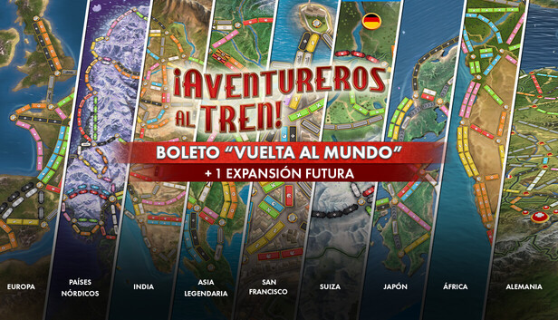 Para construir el imperio ferroviario definitivo, ¡necesitas el Boleto Alrededor del Mundo de Aventureros al Tren! Con el Boleto Alrededor del Mundo de Aventureros al Tren, obtendrás acceso inmediato a las expansiones actualmente lanzadas. También se te otorgará acceso a todas las expansiones inicialmente planeadas a medida que se lancen, para un total de 10 expansiones.