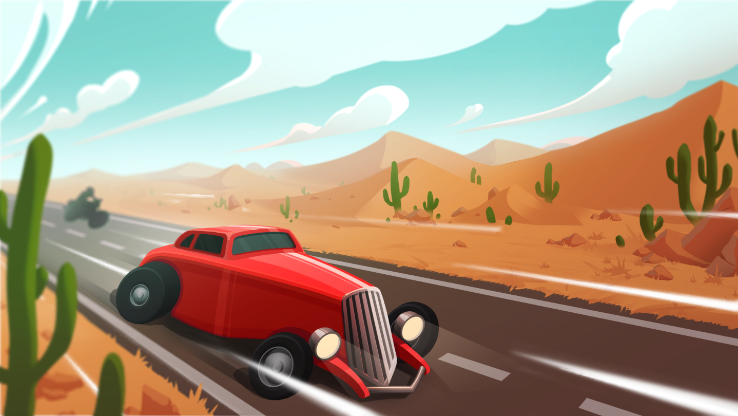 Race, Upgrade, and Rank Up in this Endless Arcade Racing Game in Single Player or 2 Player Versus Mode!