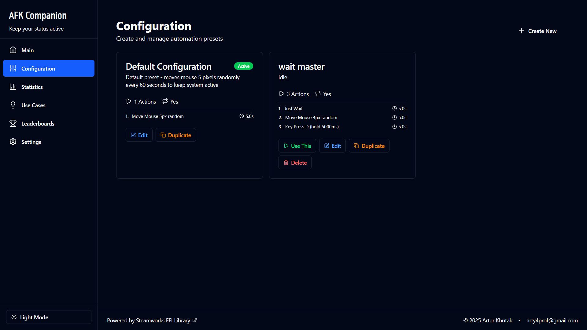 A lightweight, cross‑platform desktop utility that prevents automatic idle detection in games, applications, and communication platforms. Features include a configurable auto clicker and customizable automation parameters.