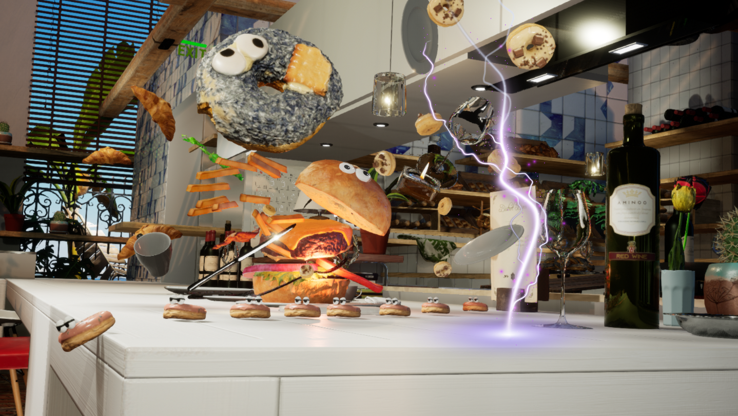This time, the cafe has been renovated, and in addition to the donuts, hamburgers also try to escape.