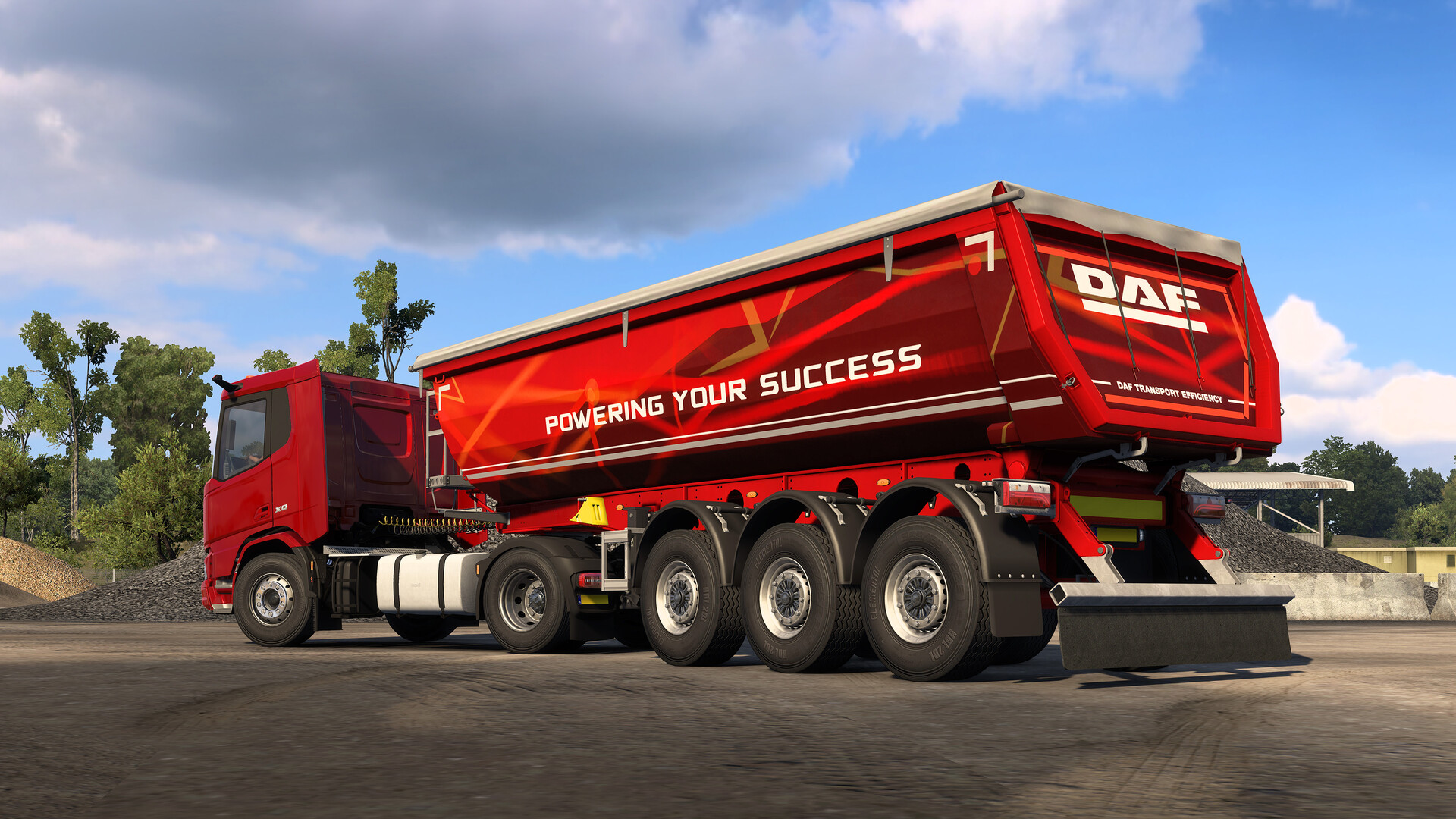 • Rouge Flamme base colour and "Powering Your Succes" paint job for the truck and SCS Dumper and box trailers