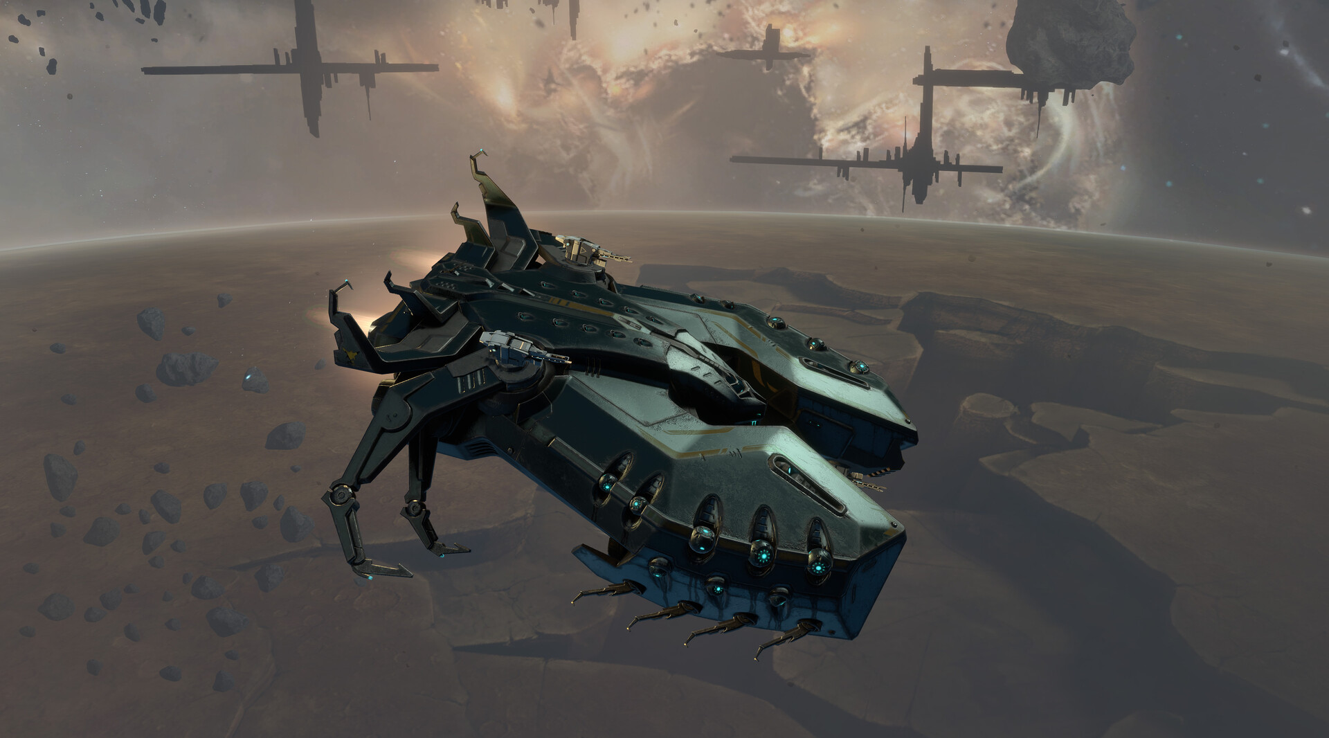 The appearance of the ship changed noticeably when the second model was created in 4622. The fighter was changed even more on the inside. The ship’s contours made it somewhat similar to the Sentinels’ “Plague doctor”. After passing all tests with flying colours, the new command attack fighter was given the serial name Hadrian and joined the service of the Holy Empire. The ship had its baptism of fire in a battle with biomorphs not far from the Solar system.