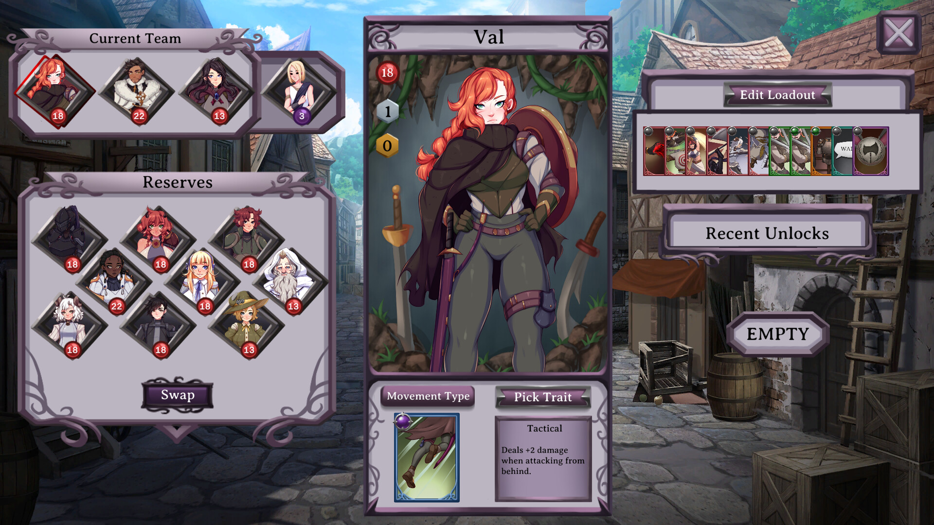 Fight in turn based strategy combat across 50 handcrafted battles.  Use cards, passives, and tactics to win.  Learn what characters synergize well with each other.  Match characters and cards together to get massive results.