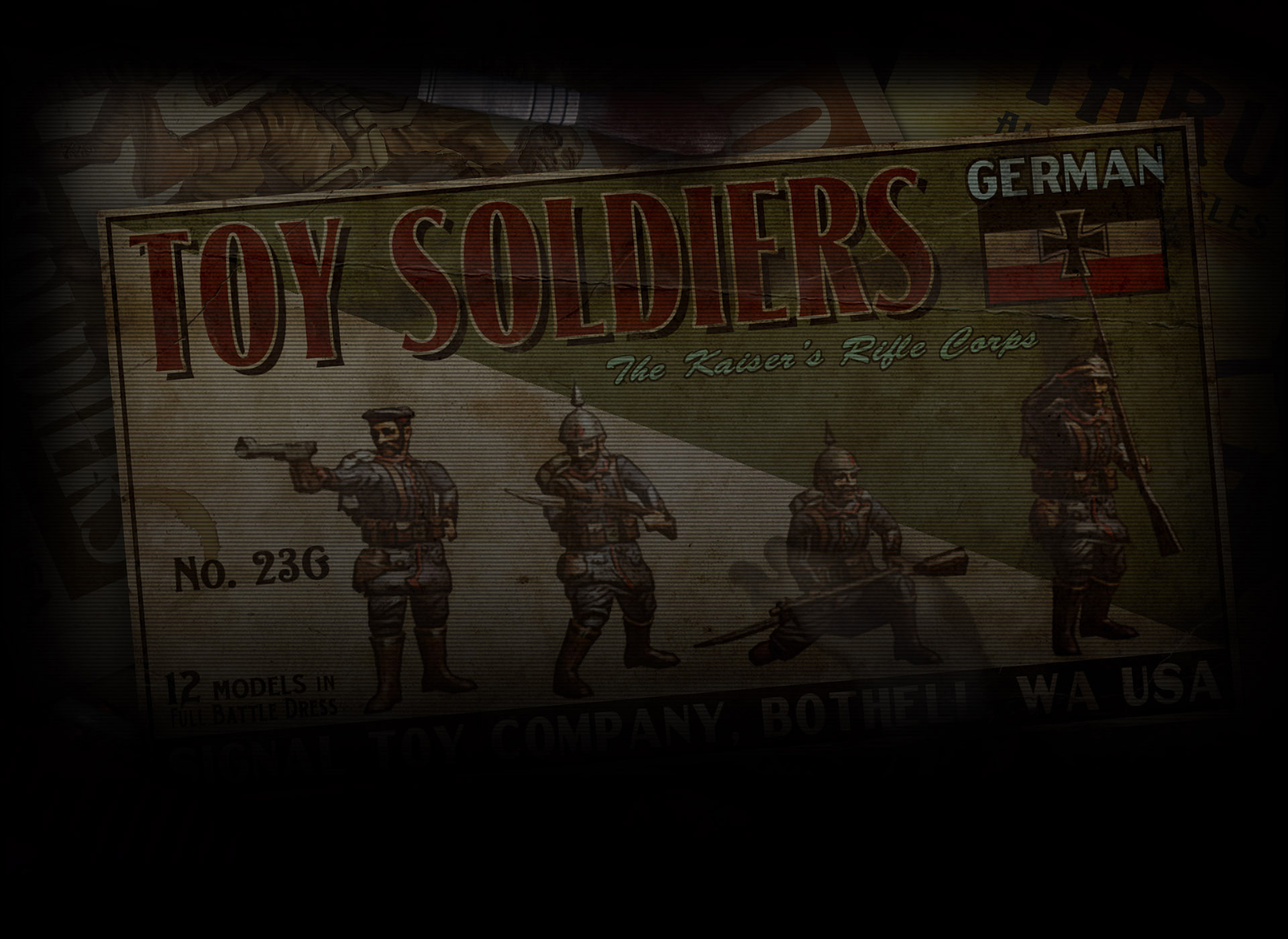 Put on your Kaiser’s helmet and command the German Army against a mad menagerie of new antagonistic toys, including flying saucers, chivalrous knights, and the “Rolls Royce of the Sky,” the WWII Mustang.