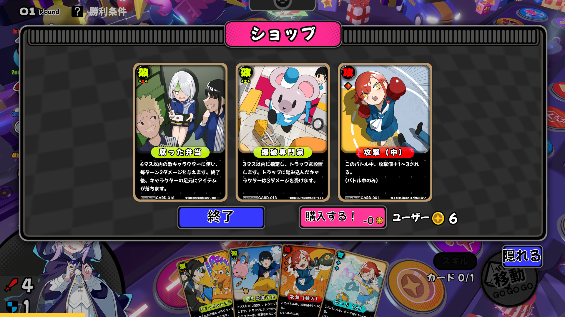 プレイヤーは独自のカードを使って対戦できます。多様なタイルがある本ゲームでは、各プレイヤーにさまざまなカードが提供されます。各カードには特性があり、詰まった時でも逆転の可能性を秘めています。これらのカードがゲームに予測不能な展開をもたらします。戦略的なカードプレイとキャラクタースキルを組み合わせることで、驚きのコンボが生まれ、他のプレイヤーを驚かせるでしょう。