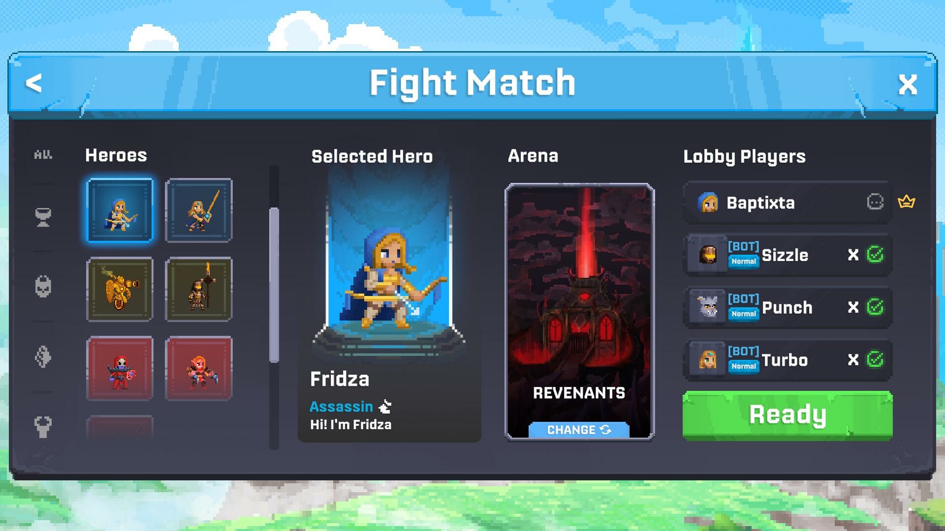 Engage in a variety of exciting gameplay modes such as casual free-for-alls, 1x1 intense match-ups, competitive ranked matches, and exclusive private rooms to invite friends. Experience the thrill of fast-paced combat, pixle art visuals, and a diverse roster of fighters as you showcase your skills and climb the ranks. Join the Atlas Wars community today and embrace the challenge of this action-packed gaming experience