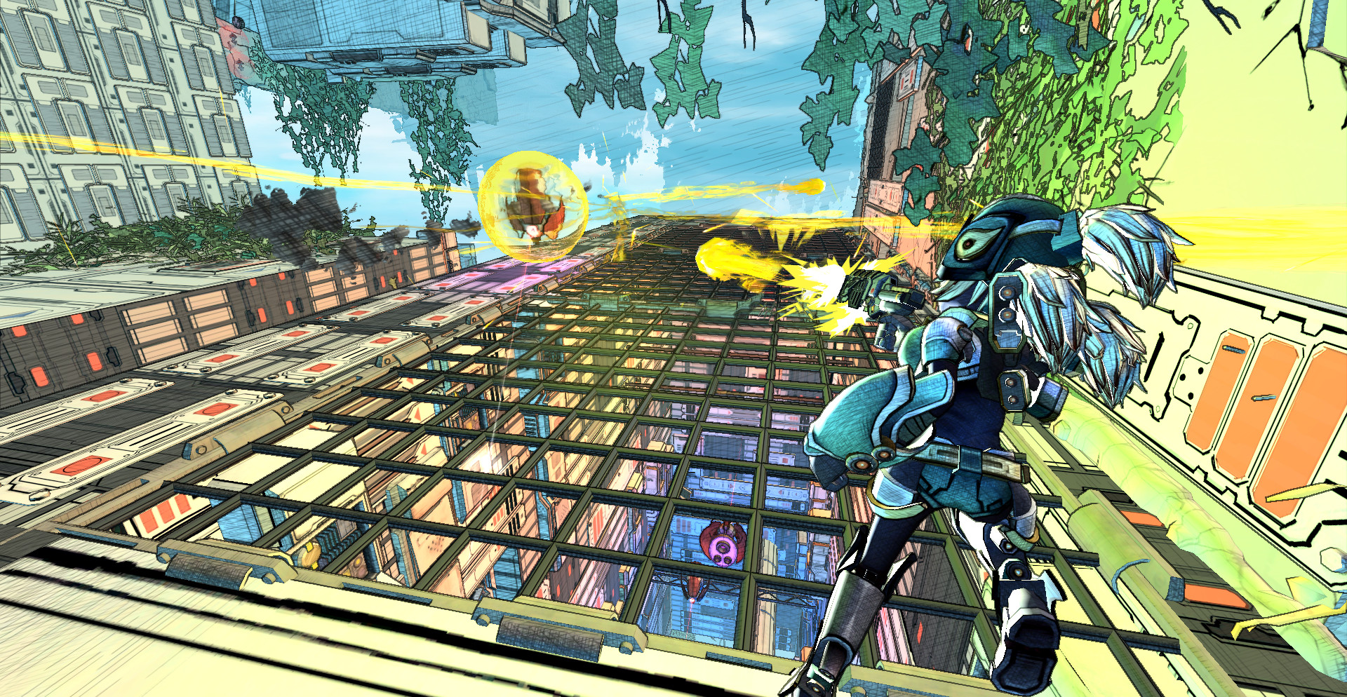 Run on walls, leap hundreds of meters, dodge, and destroy hostile robots.