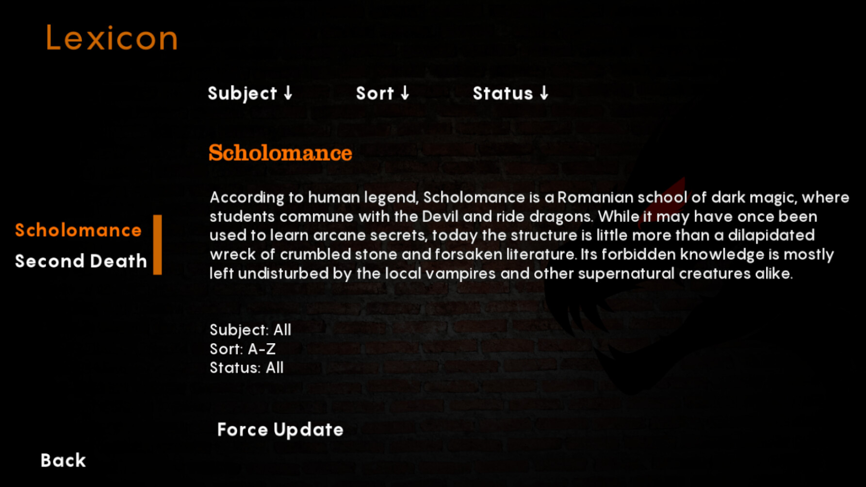 • Additional Systems: Explore the Internal Achievements and Lexicon Systems.