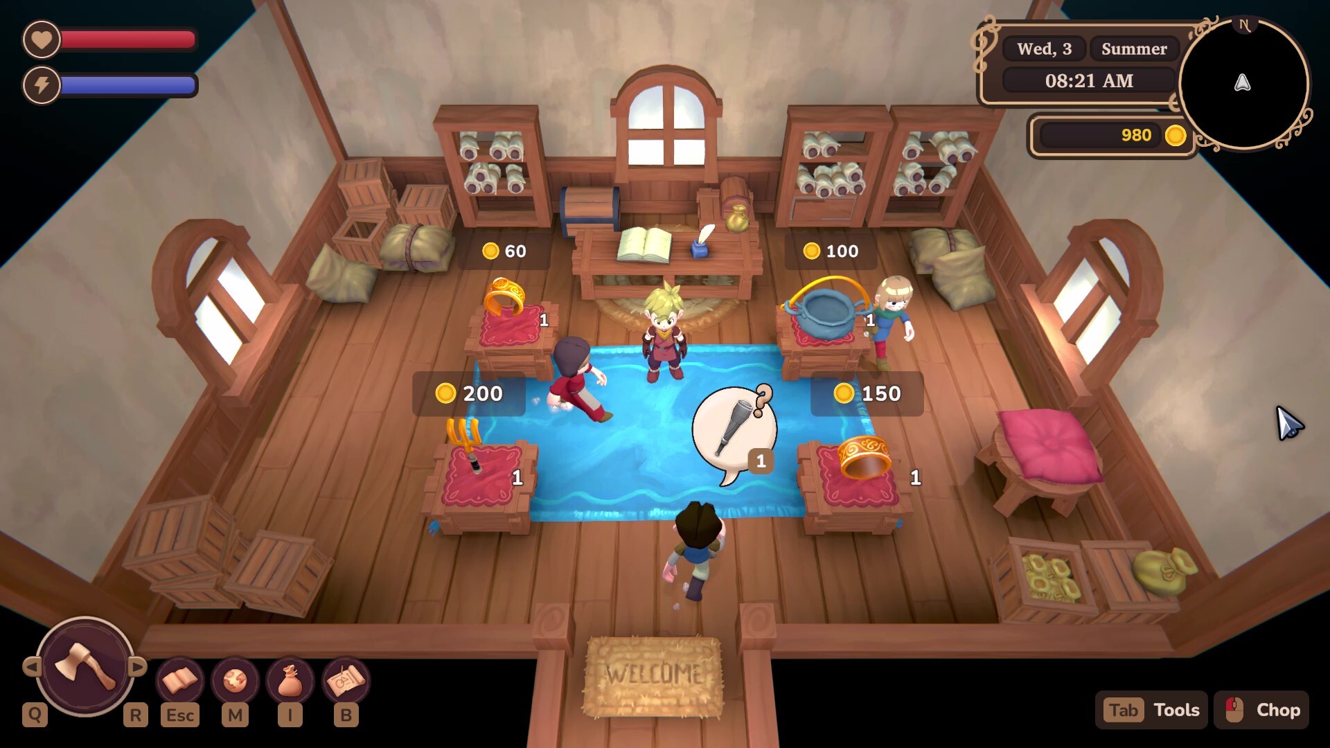 Werde zum erfolgreichen Ladenbesitzer: Präsentiere deine Waren, verwalte dein Inventar und gestalte eine einladende Fassade, um Kundschaft anzulocken. Rüste dein Geschäft schrittweise auf und werde zum Herzstück der Stadt.