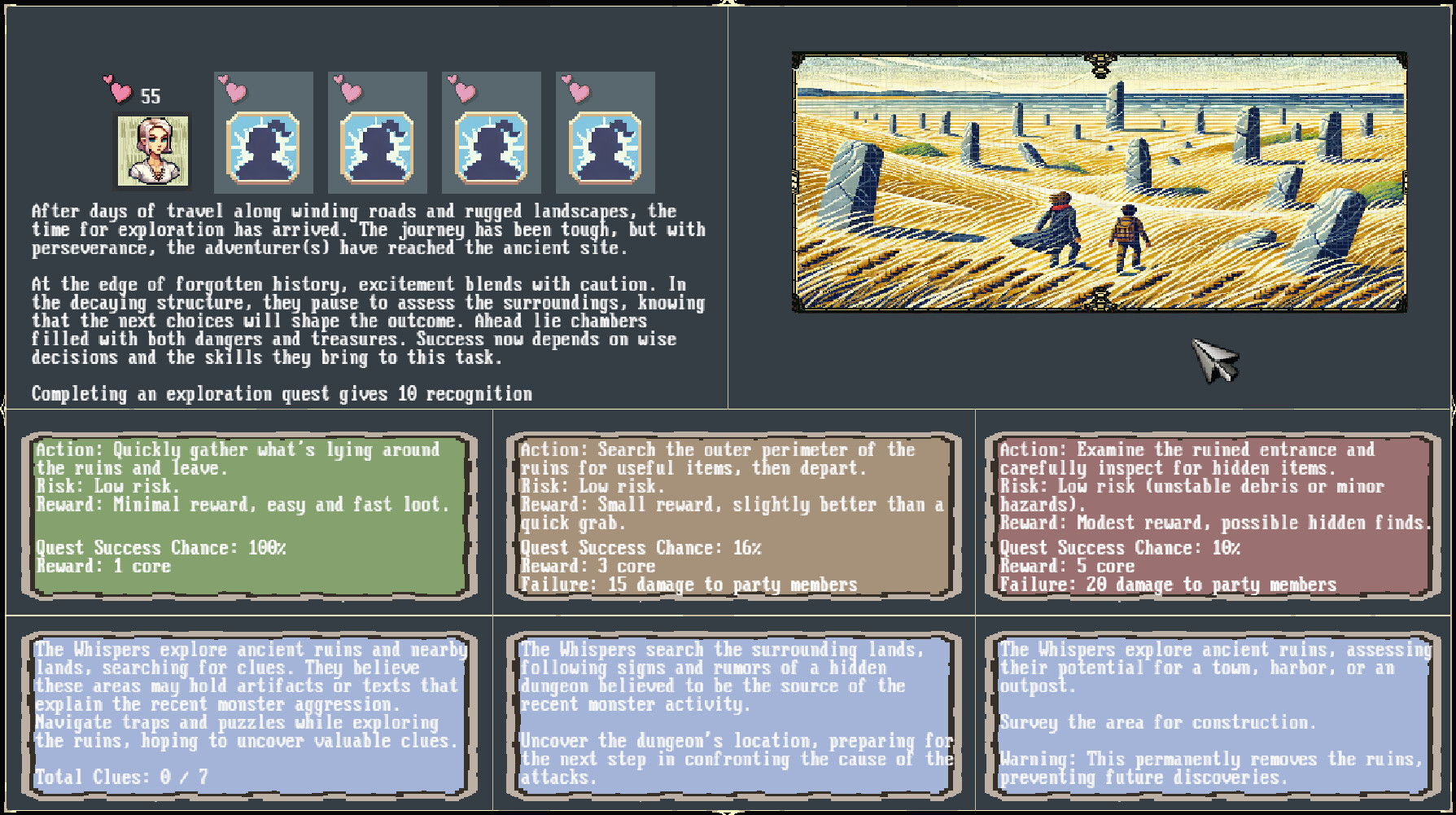 เผชิญกับเหตุการณ์หลายร้อยครั้งและการตัดสินใจที่ยากลำบาก คุณจะฝึกฝนสมาชิกของคุณเพิ่มเติมหรือส่งพวกเขาไปทำภารกิจที่เสี่ยงอันตรายเพื่อรางวัลที่ใหญ่กว่า?