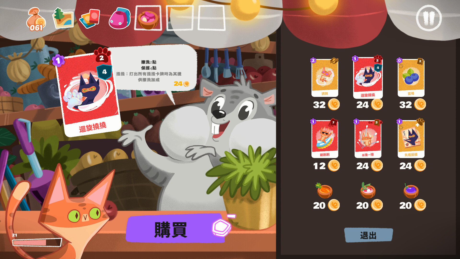 隨住關卡推進,挑選擁有特殊能力嘅卡牌,為迎接森林盡頭嘅首領戰做好萬全準備!每次冒險都可以自由調整牌組策略,小豬泥服泥服同貓咪兩位角色可供選擇,每位都擁有專屬牌庫。