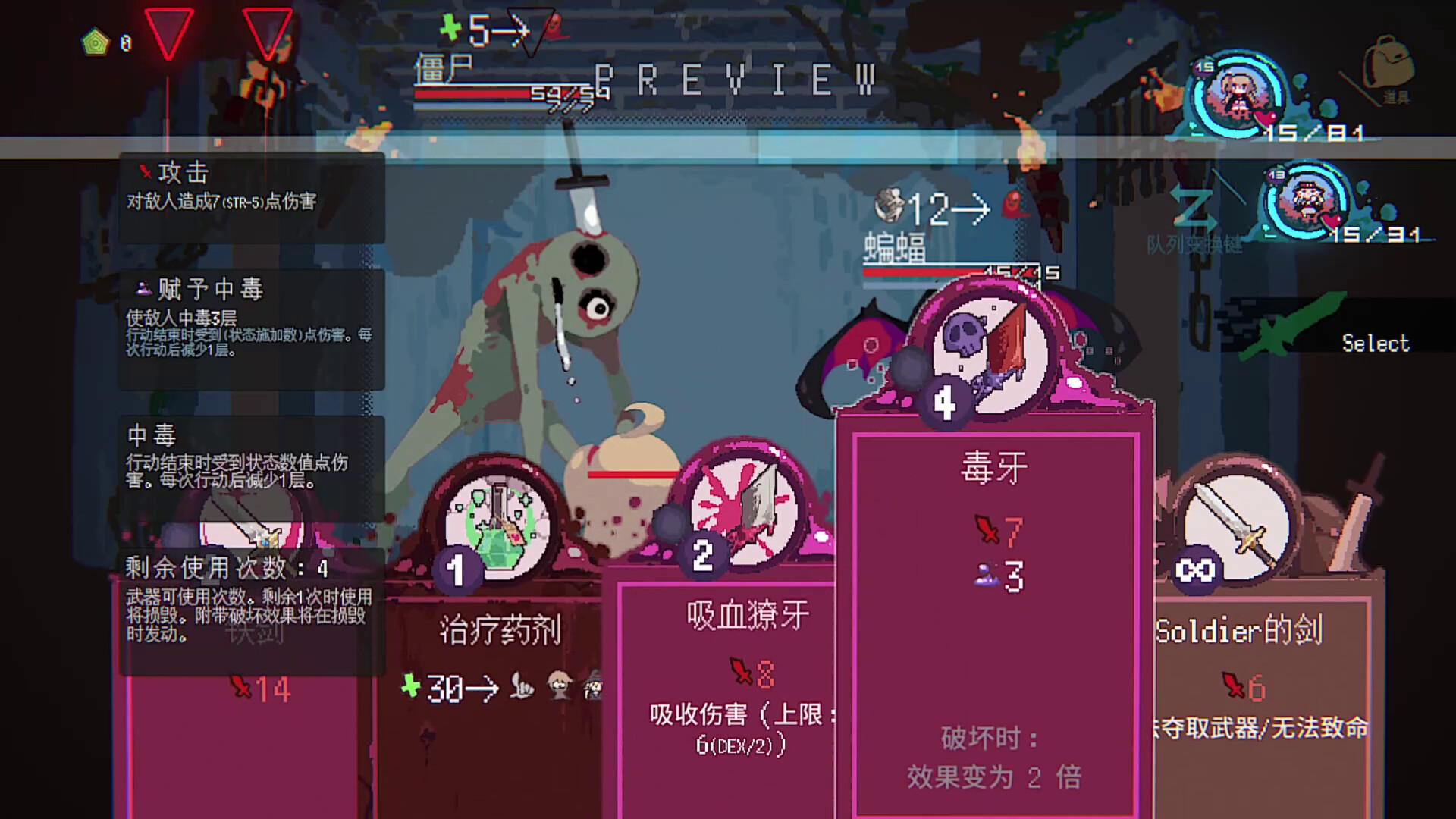 然而不光是道具,武器也会在使用过程中损耗,用得越多,损耗越快。因此在何时使用何种武器,也很重要。依据敌人的“下一步行动”,选择最佳策略,是制胜之道。