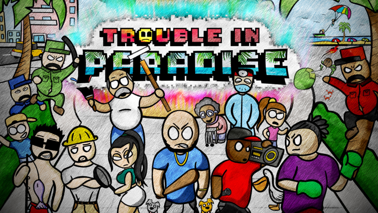 Trouble in paradise takes place in the tropical town of North Beach Village where Chico and his townspeople are just having a normal day in the Barrio when suddenly, it has been taken over by Captain Jefe! His henchmen quickly take over the village and surrounding cities! It’s up to Chico and his awesome crew of badass homies to defend the town and nearby cities with his Mighty Bat!