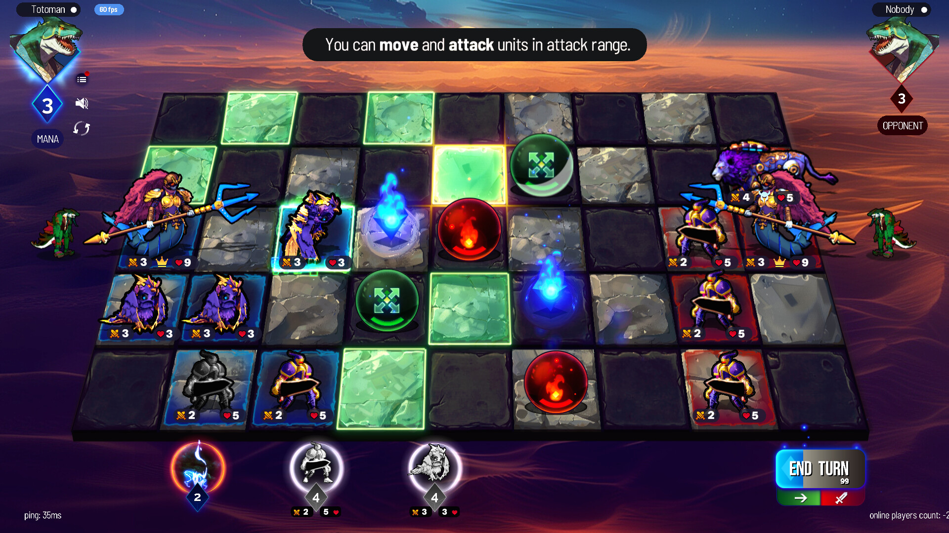 • PvP Multiplayer: Challenge your friends or take on other players to prove your mastery on the 9x5 board of infinite tactical depth. Multiplayer is async, meaning you can leave mid game and come back later to play your turn.