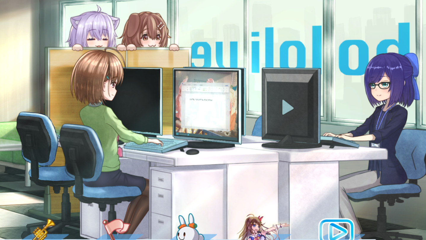 When you return to the office, the home screen, you'll be greeted by newly recorded voice lines from Harusaki Nodoka, a staff member of hololive. In the office, talents from hololive may also make appearances, and you might witness some unexpected interactions.