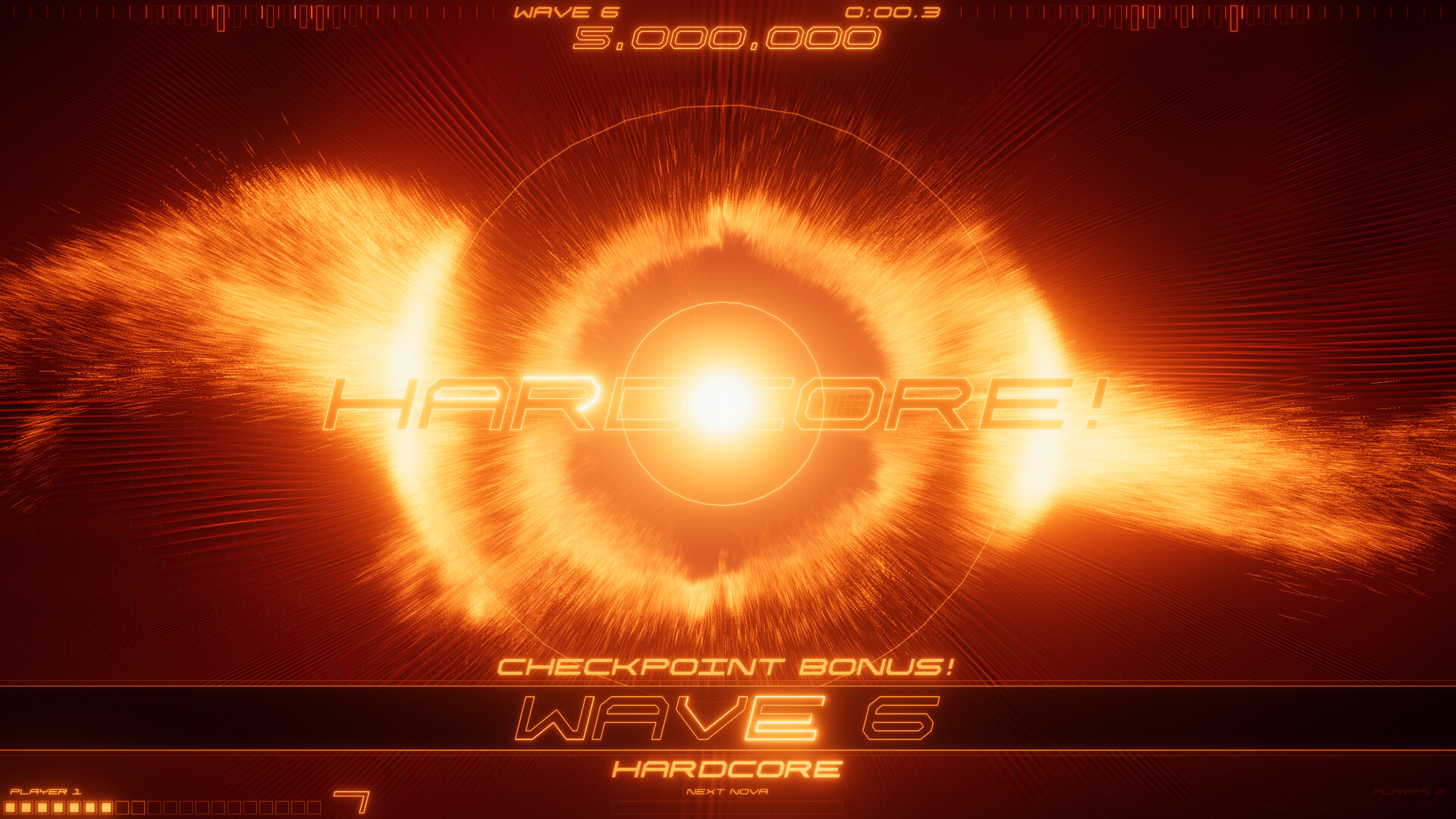 Both difficulty modes (and game modes) use the same scoring system, but all 4 are tracked separately. The exponential combo scores encourage herding as many enemies into a single bomb's blast radius as possible, but overdoing it has a subtle drawback. Going for massive scores reduces the number of Novas generated. Your style of play determines the balance of scoring vs. survivability.