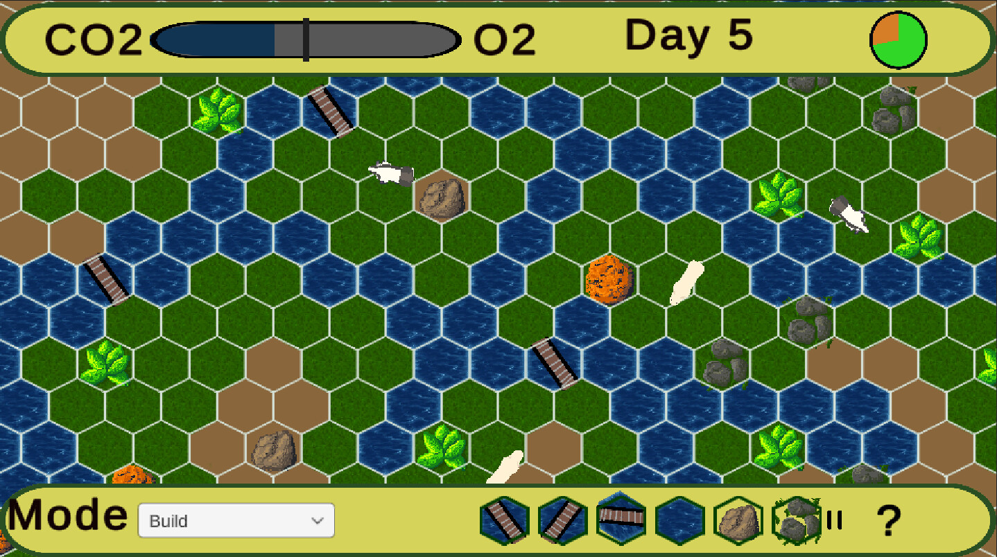 Eco Balance simple 2D strategy game. The object of the game is to keep a balance of O2 and CO2 in your world, to keep your Eco sysment a live. The full game will have two modes. Main Play mode is to see how many days you keep your world alive. This mode will be included in the demo. Sandbox mode lets you build your world without having the game end by having too much O2 or CO2. The full game will have leader-board for Main Play mode and you will be able to save your world.