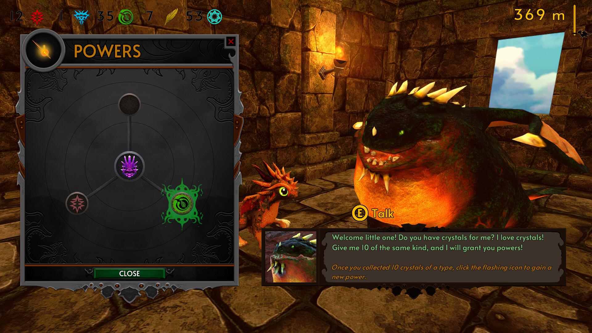 Are your pockets full of treasures? Well, it's time to use them! Speak with your dragon guide to exchange crystals and learn new skills for your dragon. Gliding? No problem! Spitting fireballs? Bring on the heat! Flying? If you just believe, there shall be nothing stopping you from touching the sky!