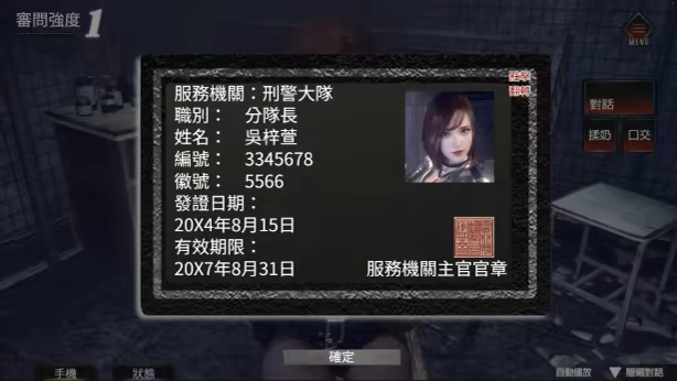◇ Interrogation and Conditioning: Players can use various methods (such as threats, deception, teasing, use of props, etc.) to break down the policewoman's psychological defences, accumulating Conditioning Levels in the process.After the conditioning level is reached, key information is identified through interrogation.Unlock new training scenes and unlock more ways to interact.