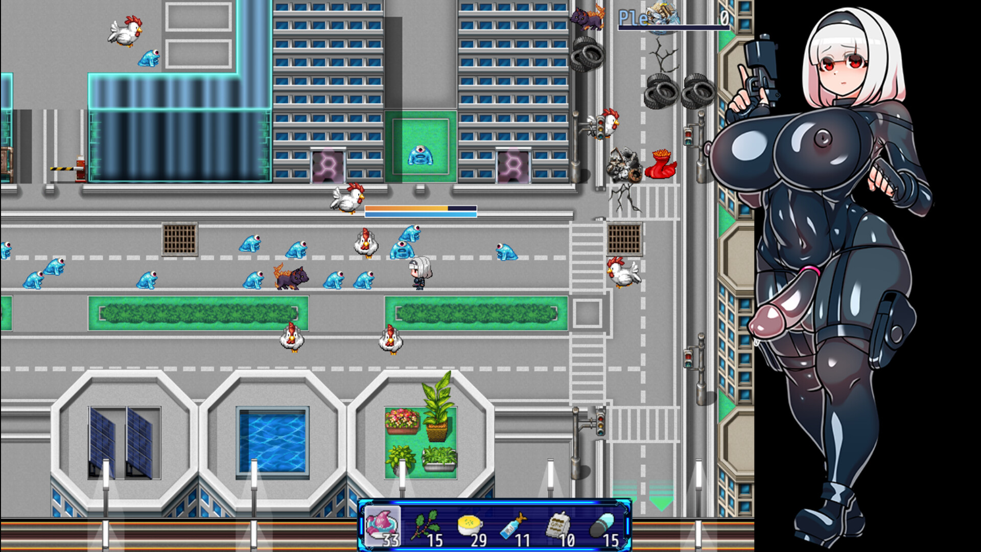 There are two main types of H-scene: the dubbed H-scene after losing a battle, and the H-scene where you get caught in a tentacle after making contact with a monster on the map.