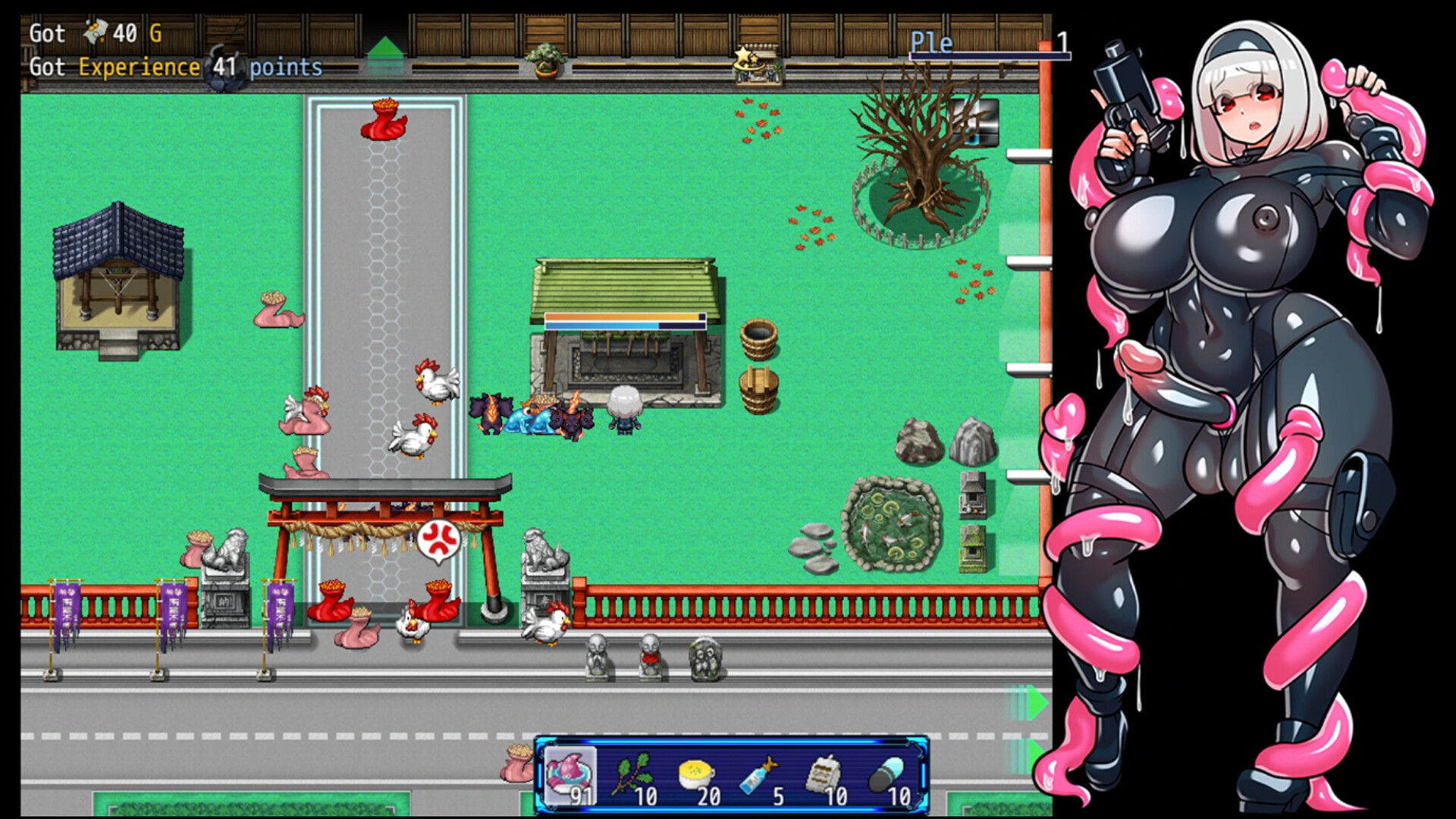 There are two main types of H-scene: the dubbed H-scene after losing a battle, and the H-scene where you get caught in a tentacle after making contact with a monster on the map.