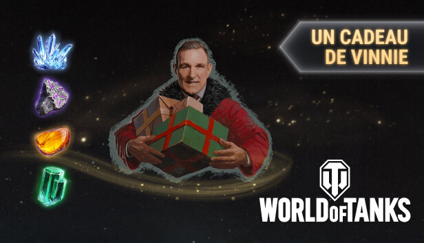 Les fêtes d'hiver sont arrivées dans World of Tanks ! Prenez ces ressources des Opés des fêtes pour améliorer votre Village festif ainsi qu'un pochoir saisissant grâce au DLC exclusif à durée limitée Un cadeau de Vinnie ! Ajoutez gratuitement ce lot à votre compte pour recevoir 50 ressources des Opés des fêtes de chaque type (Fer de météorite, Émeraude pure, Cristal de roche et Ambre chaud), ainsi que 3 pochoirs Un cadeau de Vinnie. Assurez-vous de prendre ce DLC avant le 8 janvier 2024, à 06:00 UTC !