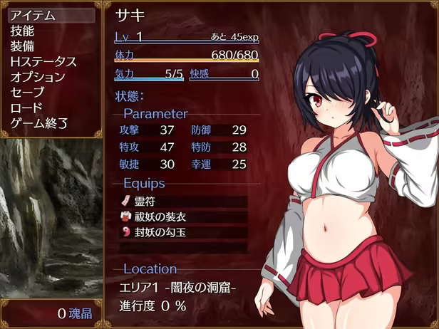 A dungeon crawl necessitates preparation. Give Saki the best equipment available and prepare her for whatever may come her way.