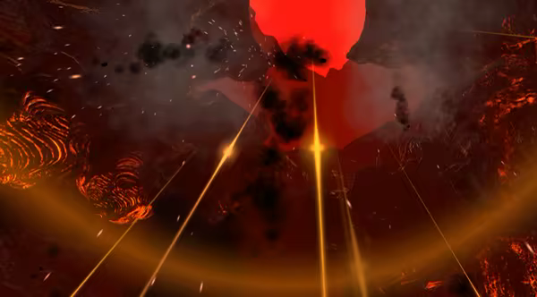 Chapter 1 begins with the first stage of the disaster brought about by the absolute god Arteus, featuring hellish landscapes and monsters. Particularly, the River of Blood, boiling with lava, and the cave walls are all dripping with blood, and the monsters that used to live off this blood refuse to allow humans to enter.