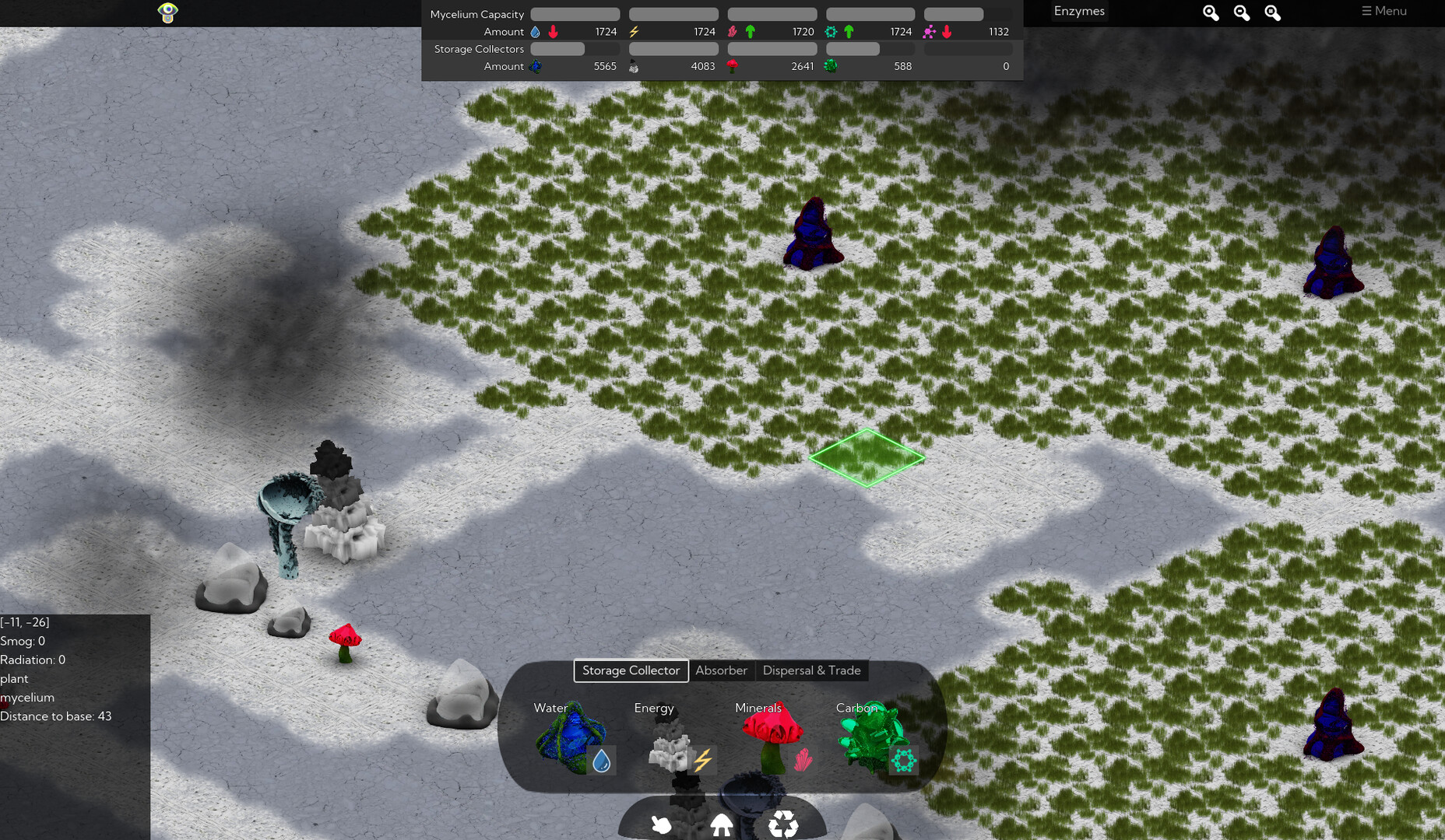 Isometric strategy game, you command a collective of fungi in a post-apocalyptic Earth. Utilize mycelium to build structures, manage resources, and mitigate environmental threats. Your choices shape the balance between life and desolation. Engage in strategy to be Earth's final line of defense